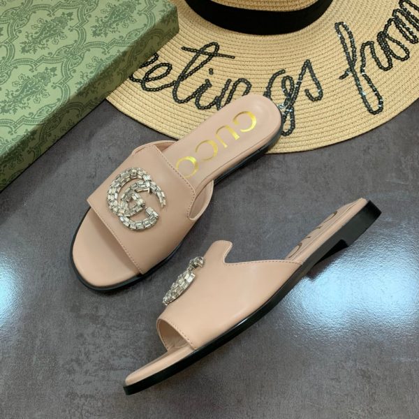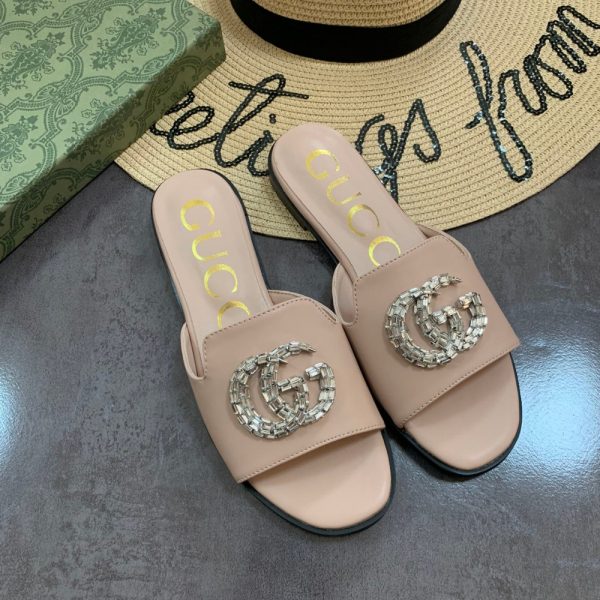 Gucci Double G Slippers Leather Beaded In Beige