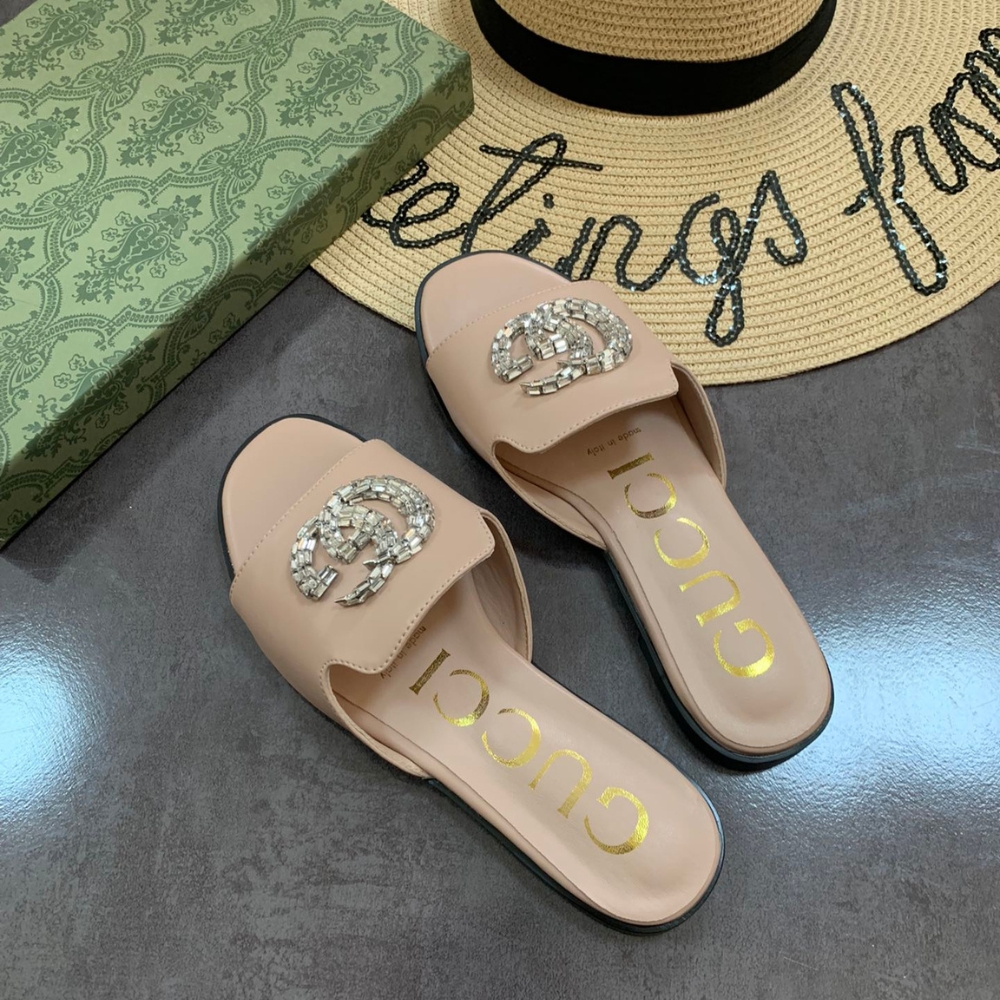 The Gucci Double G Slippers in beige exude understated elegance, with sleek lines elevated by the shimmering beaded emblem. Designed for effortless comfort and iconic allure, they bring a refined touch of luxury that affirms both prestige and timeless style.