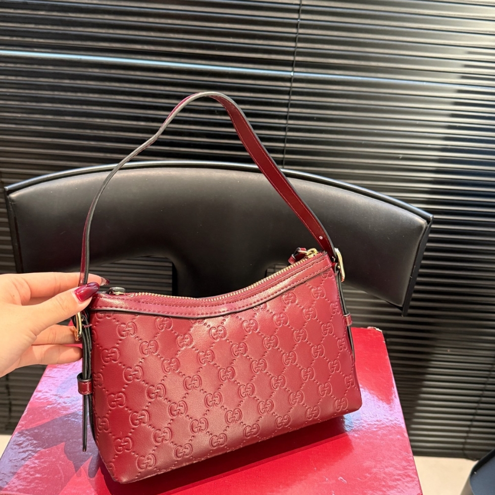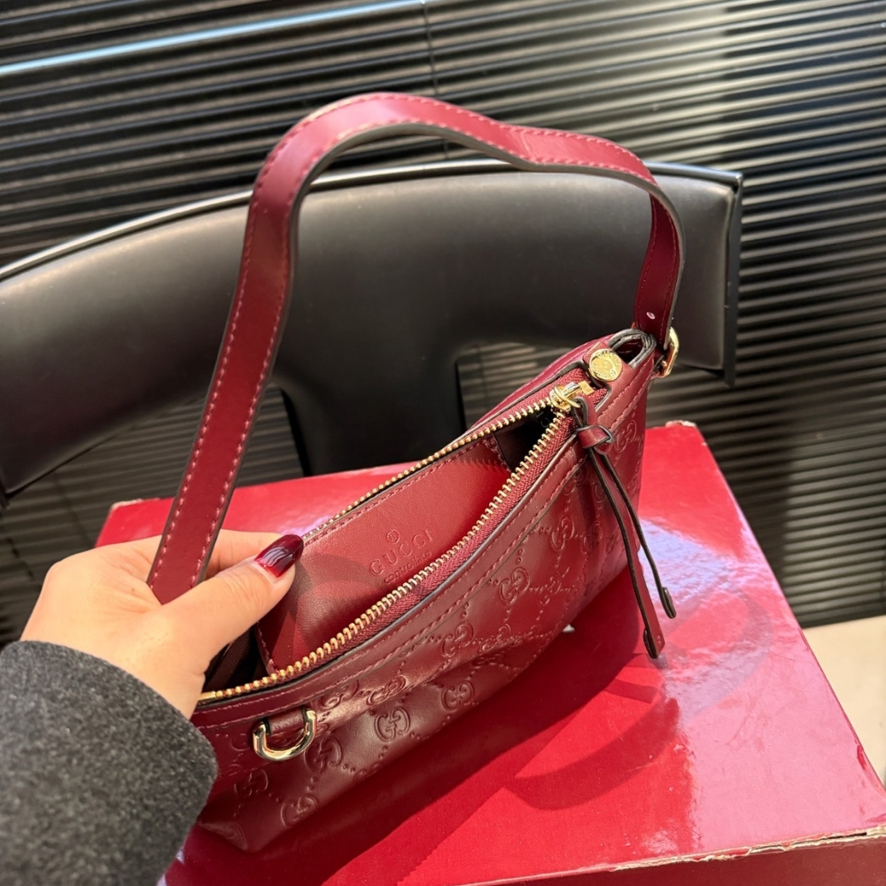 - Gucci Rosso Ancora red GG embossed leather
