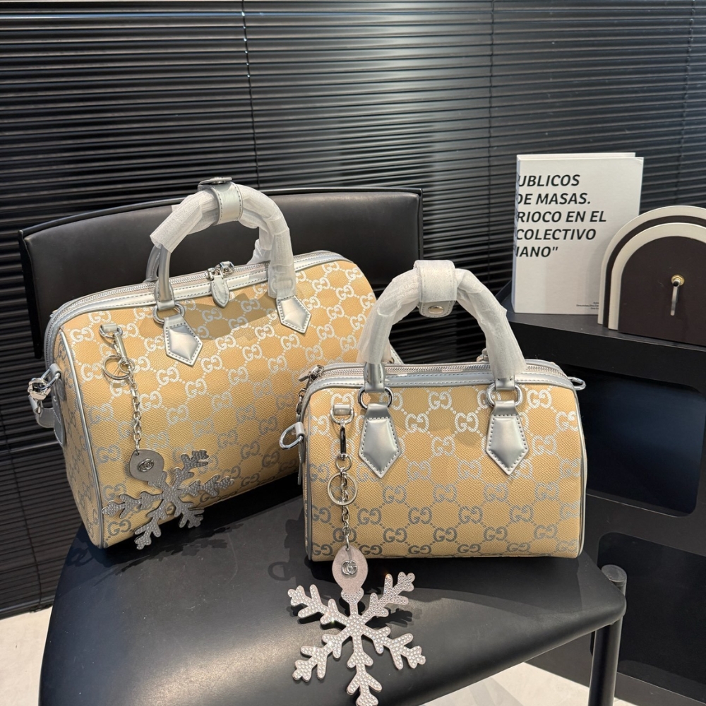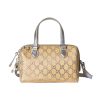- Light beige and metallic silver laminated-effect GG Monogram coated fabric