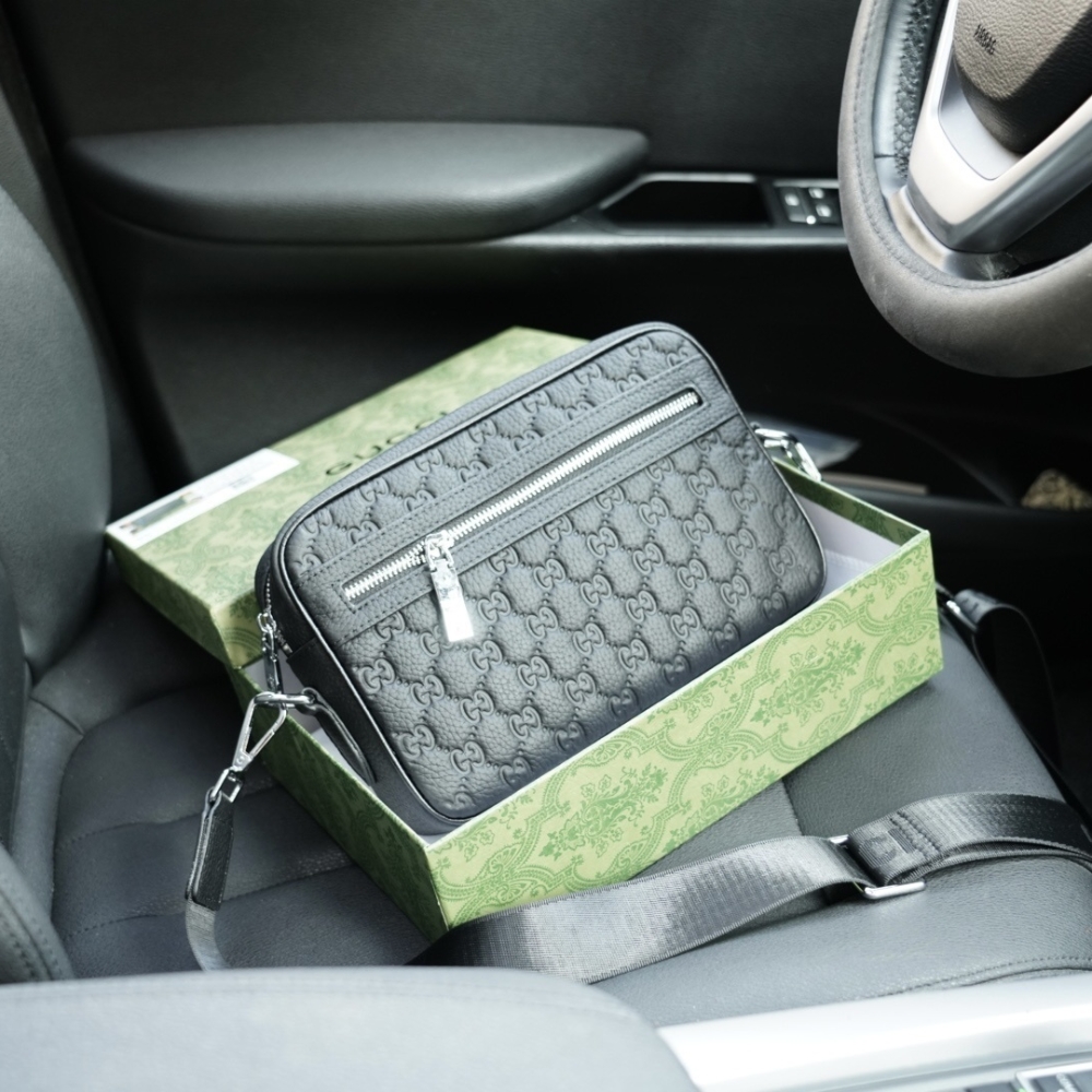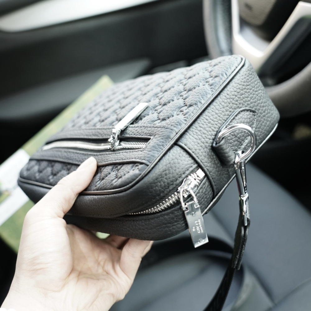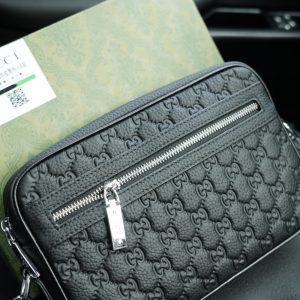 - Black embossed GG smooth leather