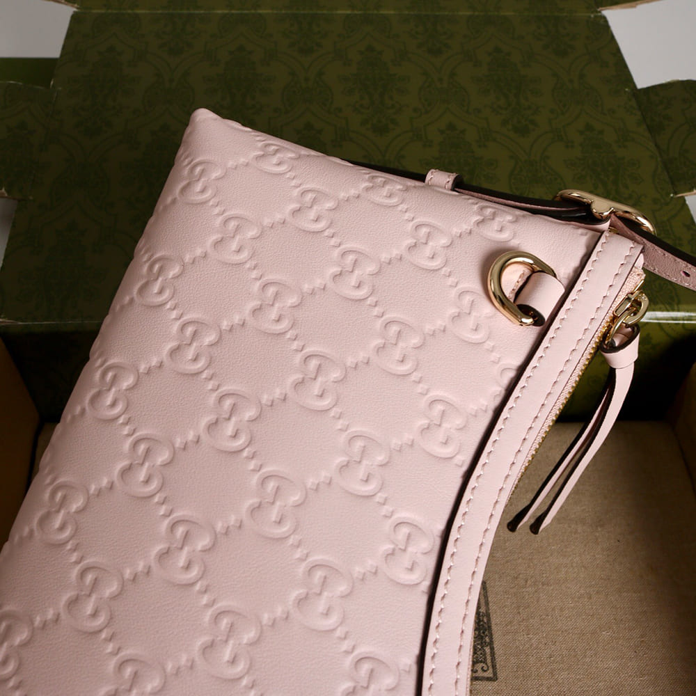 Pale pink embossed GG leather