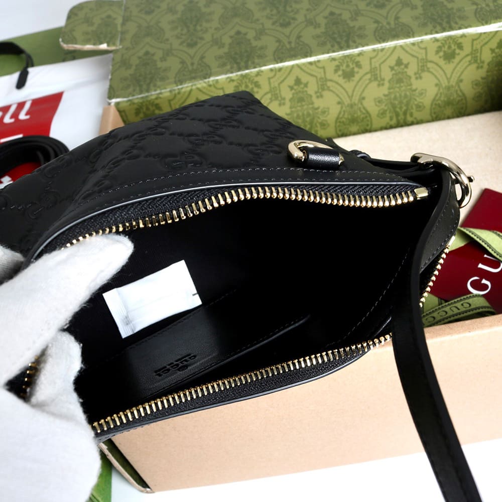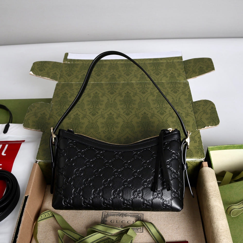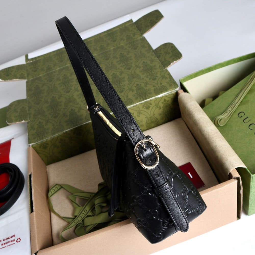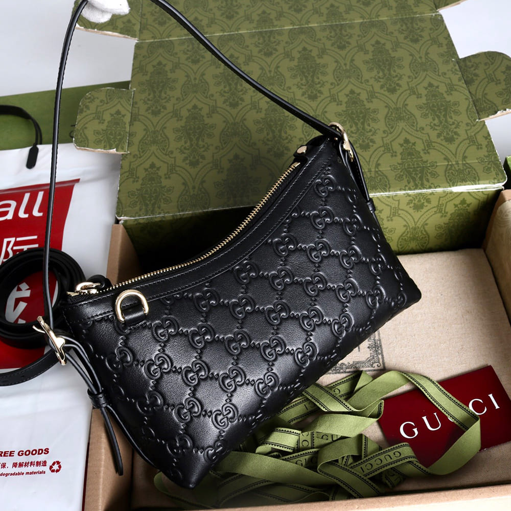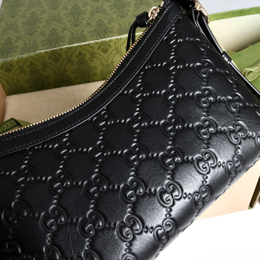Black GG embossed leather