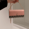A slim wallet crafted from a mix of the House’s monogram canvas and smooth pink leather and completed by a delicate chain strap. A part of the GG Marmont line, the style is defined by a mini version of the emblematic Double G hardware.