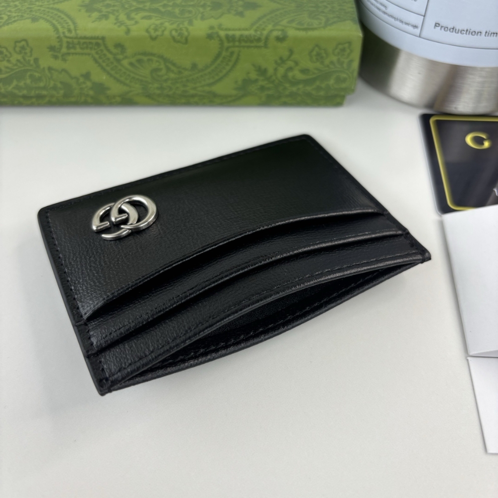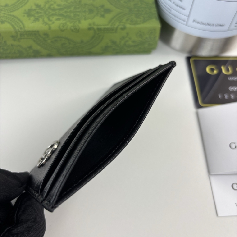 GUCCI GG MARMONT CARD CASE SILVER METAL BLACK 11CM