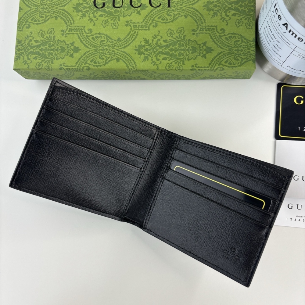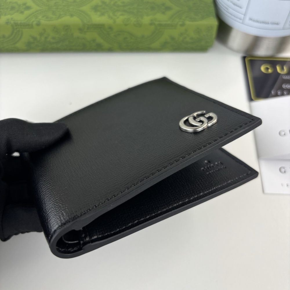 GUCCI GG MARMONT LEATHER BI FOLD WALLET SILVER METAL BLACK 11CM