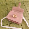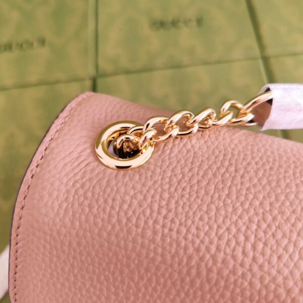 This is a chic shoulder bag from in a soft blush pink shade, offering a feminine yet sophisticated charm. The design features a structured silhouette with a flap closure, highlighted by the iconic interlocking GG logo in gold-tone hardware. Its chain strap adds versatility, allowing it to be worn elegantly over the shoulder or crossbody.
