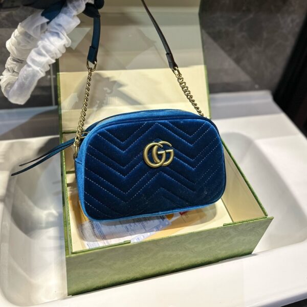 Gucci GG Marmont Small Camera Bag Velvet Dark Blue