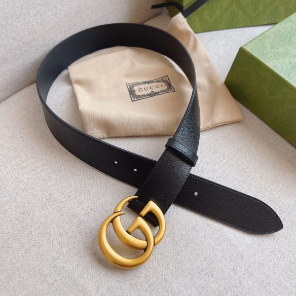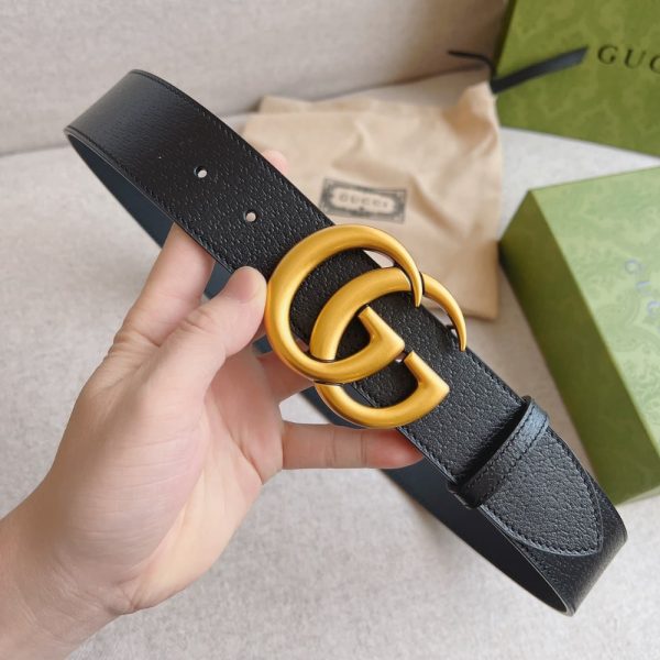 Gucci GG Marmont Wide Belt Black Gold Logo
