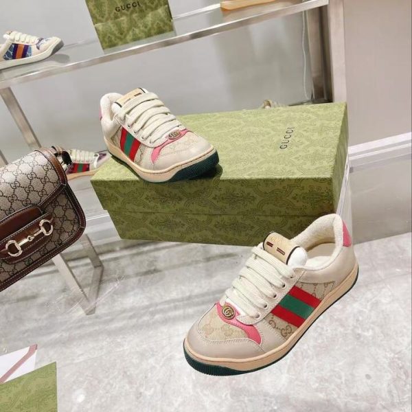 The Gucci GG Screener Distressed GG Canvas Pink channels vintage sport-inspired charm with bold design lines and the house’s iconic detailing. Radiating effortless comfort and prestige, it transforms casual style into a powerful expression of modern luxury and individuality.