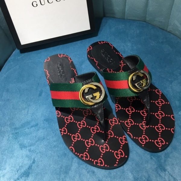 Gucci GG Thong Web Sandal Black 612138 H9020 8476