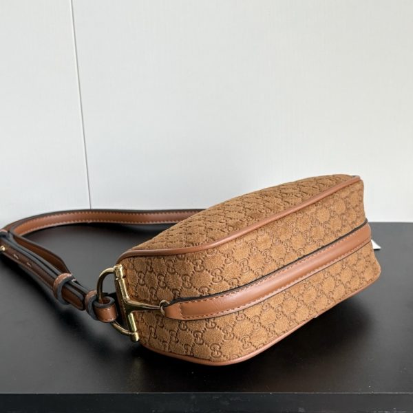 Gucci Half Horsebit offers a contemporary take on one of the House’s most emblematic codes, reimagining the signature hardware on supple leather which moulds to the body. This mini bag is stated in embossed GG suede and features a Half Horsebit detail at the side.