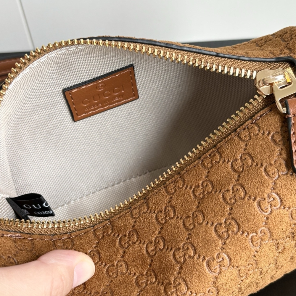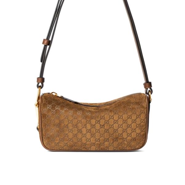 - Brown embossed GG suede