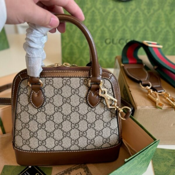 Crafted from durable beige canvas with the GG monogram, itâs trimmed with smooth brown leather and adorned with a gold-tone bit buckle, a design first used in the 1950s. This spring/summer accessory from the brand founded by Guccio Gucci can accommodate a phone, wallet, and keys.
