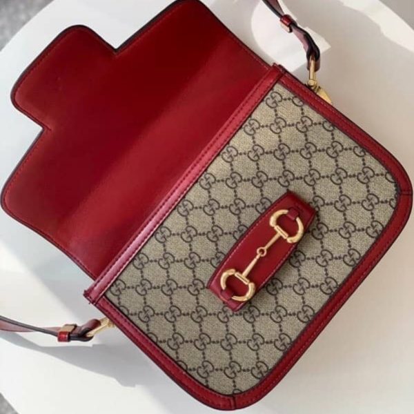 1:1 Replica Bags – Gucci Horsebit 1955 Soft Small Shoulder Bag Beige Red 25cm 815178 FAD6M 8759