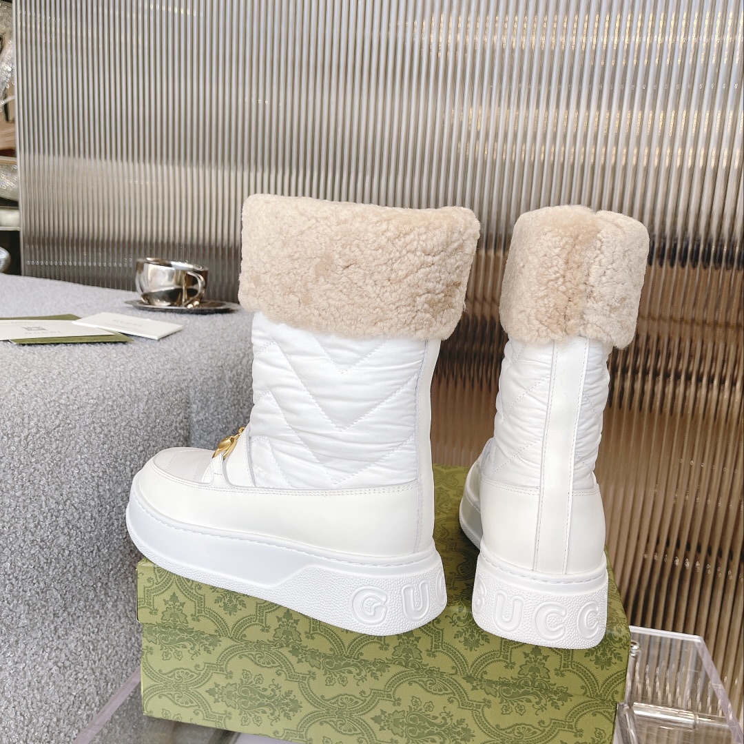 GUCCI HORSEBIT CHEVRON QUILTED BOOTS WHITE