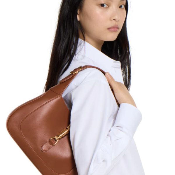 The Gucci Jackie 1961 with its signature piston closure and emblematic shape tells a story that spans eras. The shoulder bag exudes timeless elegance with a contemporary edge.