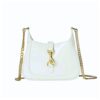 The Jackie Notte embodies the self-confidence of the iconic Jackie line, with a new silhouette and subtle details that make it perfect for nighttime wear. It is crafted from fine leather, highlighting a hook closure and light gold-toned chain strap.