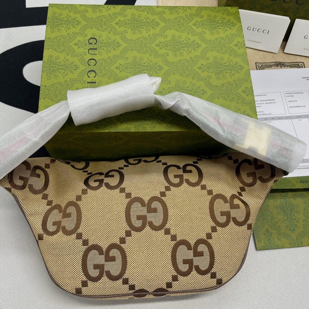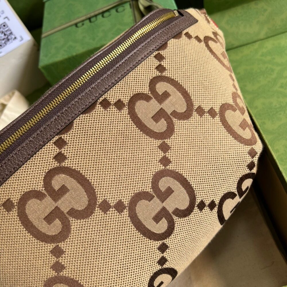 Gucci Jumbo GG Belt Bag Camel And Ebony Jumbo GG Canvas