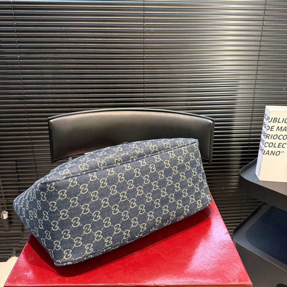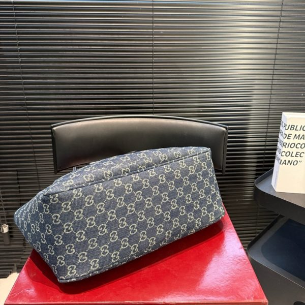 Introducing Spring Summer 2026. The Gucci Mercato new tote design is inspired by a spacious shopper markets. It can be worn with the sides either cinched or open, while featuring an easy-to-use piston closure. Crafted from lightweight yet structured GG canvas in the vintage-inspired shade of sand, the style reveals a new lining with Diamante motif taken from the archive.