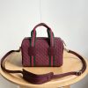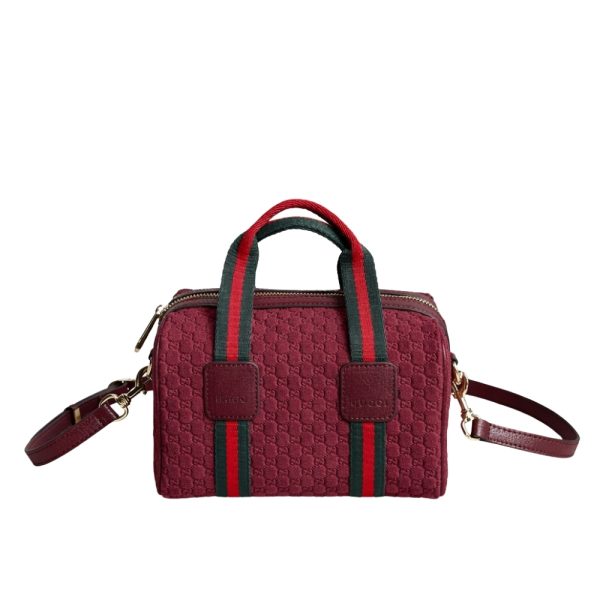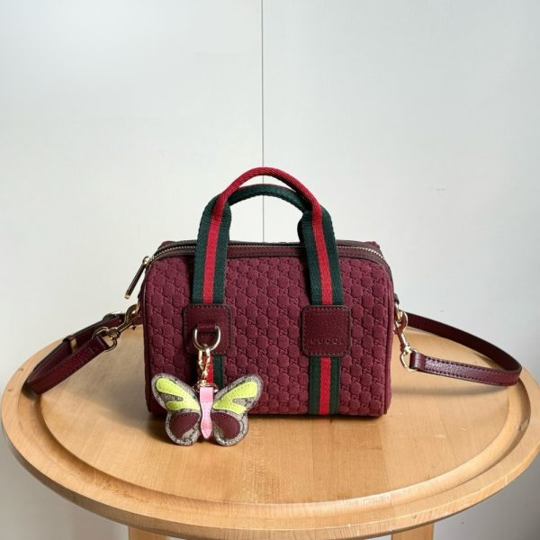 Inspired by the Gucci duffle silhouette, the Mini GG handbag continues to revisit the House’s codes and celebrated travel legacy with different materials. This version is crafted in suede for an added touch of sophistication, which speaks to its effortless elegance while highlighting the signature GG motif.