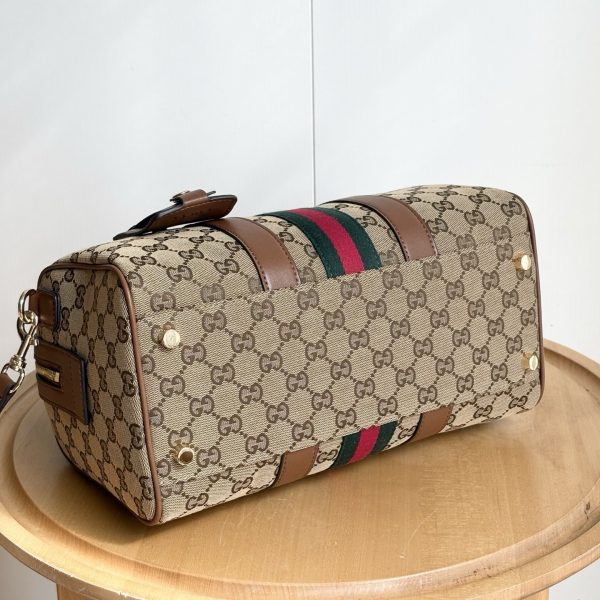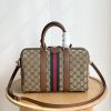 The Ophidia collection evokes the House’s heritage with the signature Web stripe and Double G emblem, featured here in gold-toned finish. This style is crafted from GG canvas in a signature colour of the season.