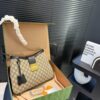 Drawing from the House’s origins as an artisanal luggage atelier, the Padlock closure features prominently on this shoulder bag in GG Supreme. It is complete with gold-toned hardware, smooth black leather trim, a chain and leather shoulder strap.