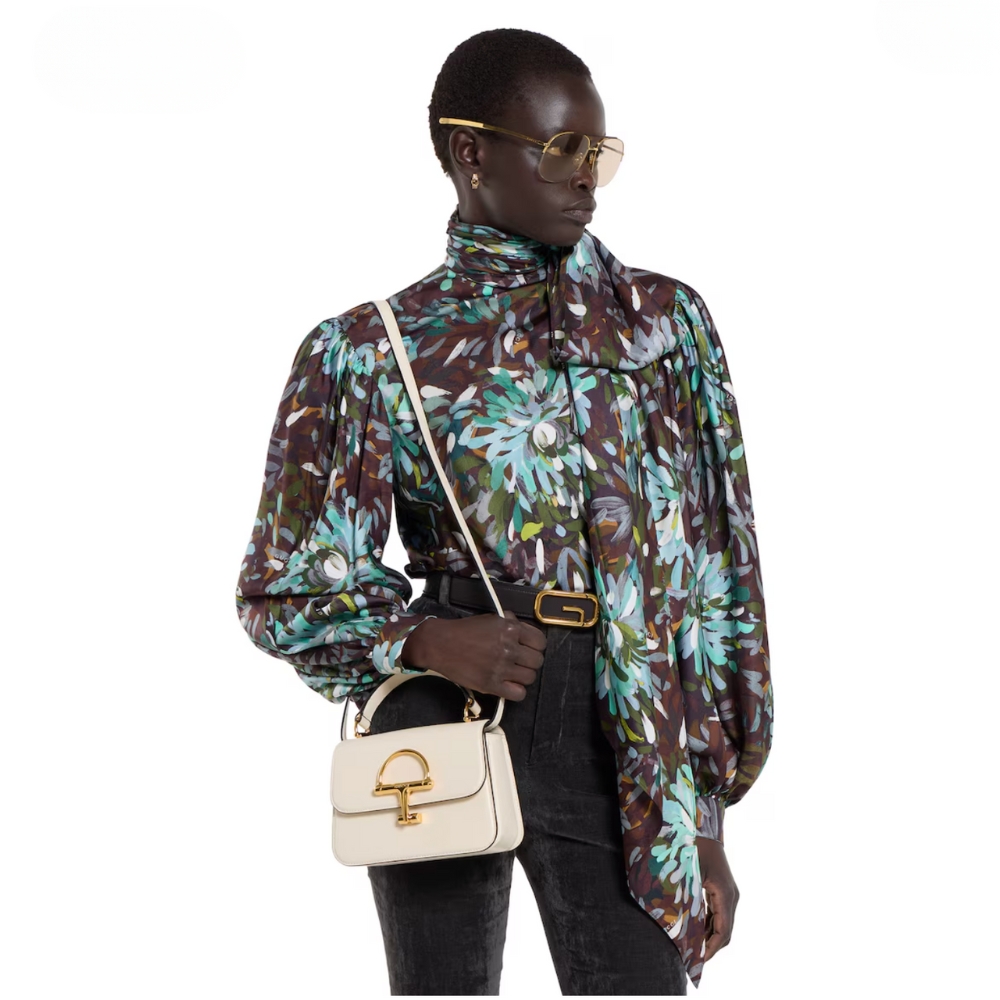 The Gucci Siena carries forward the evolution of the Horsebit, a signature code that is inherently Gucci. Crafted from fine smooth leather, its structured silhouette is defined by the half Horsebit clasp, a distinctive detail first introduced in the 1970s