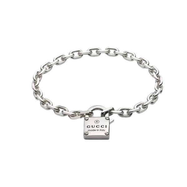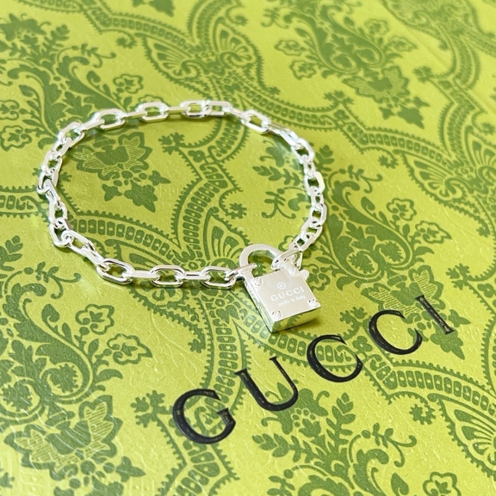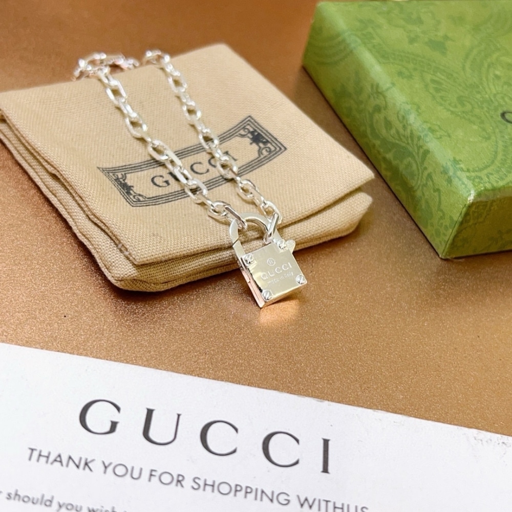 Description 1:1 REPLICA JEWELRY Silver Gucci Trademark Engraved Padlock Pendant Snap closure with padlock