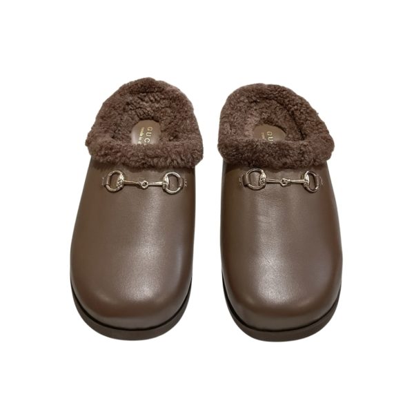 Description 1:1 Replica Shoes Brown Leather Light gold-toned hardware Merino wool lining Horsebit Rubber sole Flat