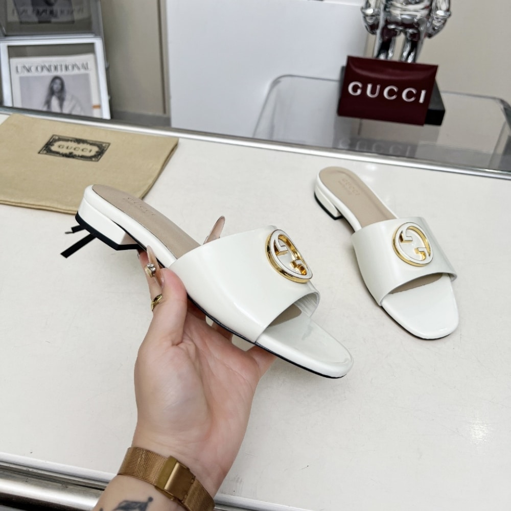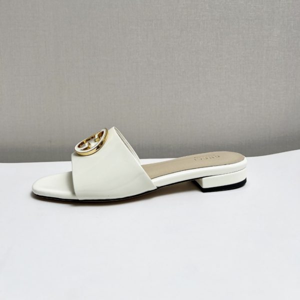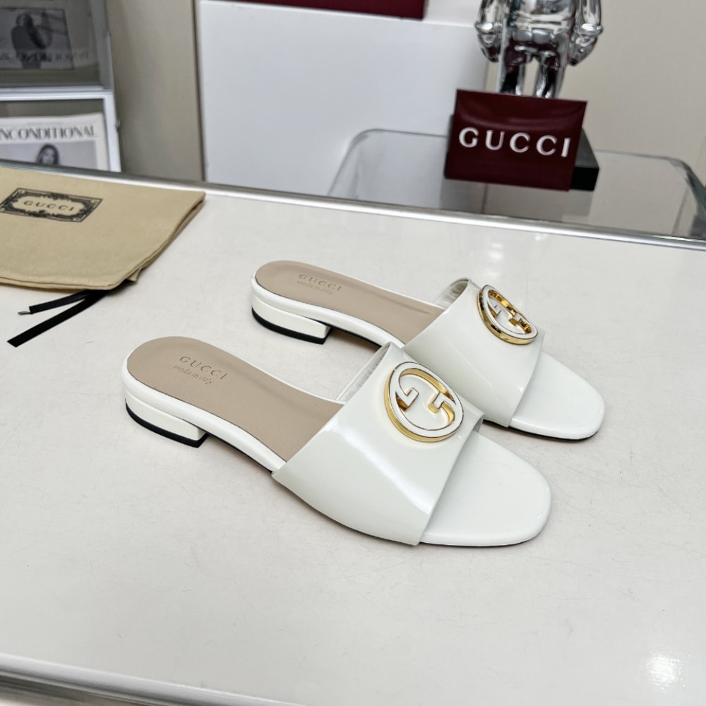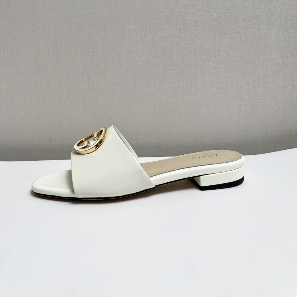 Description 1:1 Replica Shoes Gucci White patent leather Women’s Leather lining Enamelled Round Interlocking G Leather sole Flat
