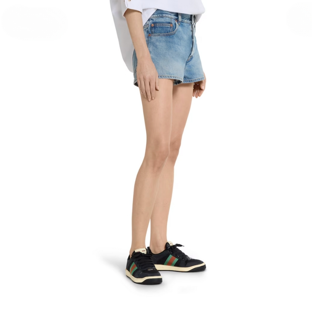 Influenced by classic sneakers from the 1970s, the Screener sneakers is named for the defensive sports move. This variation, in classic leather, features the unique green and red Web stripe on the side and the vintage Gucci logo complete the style.