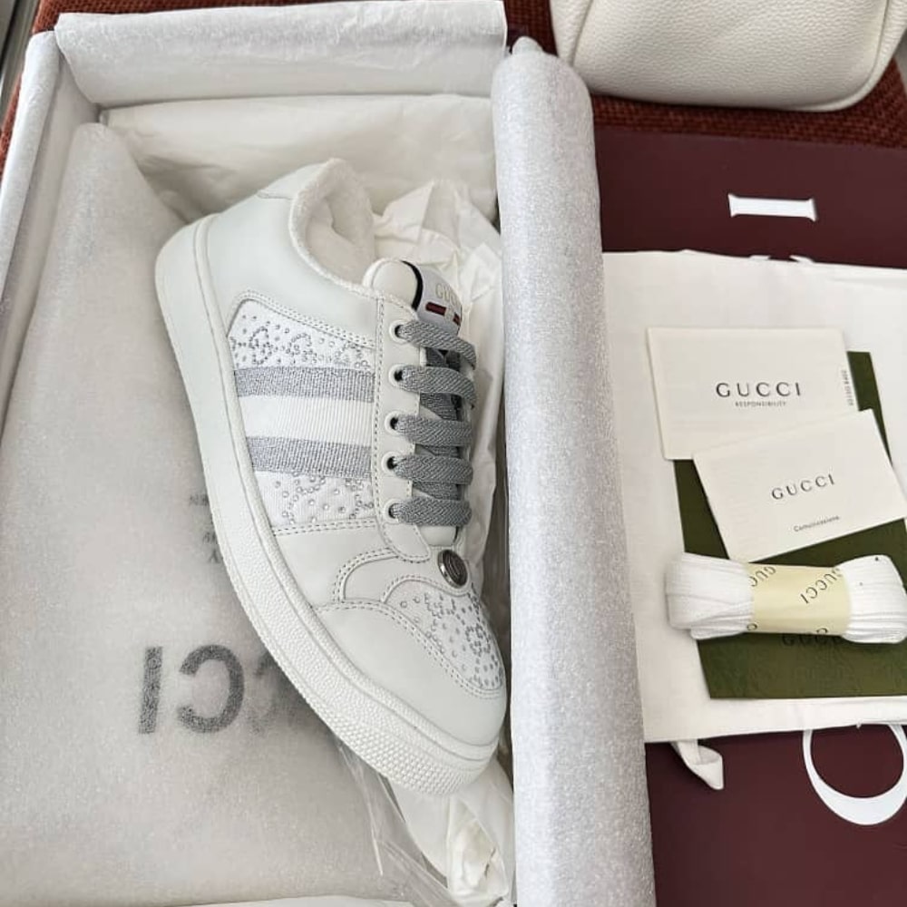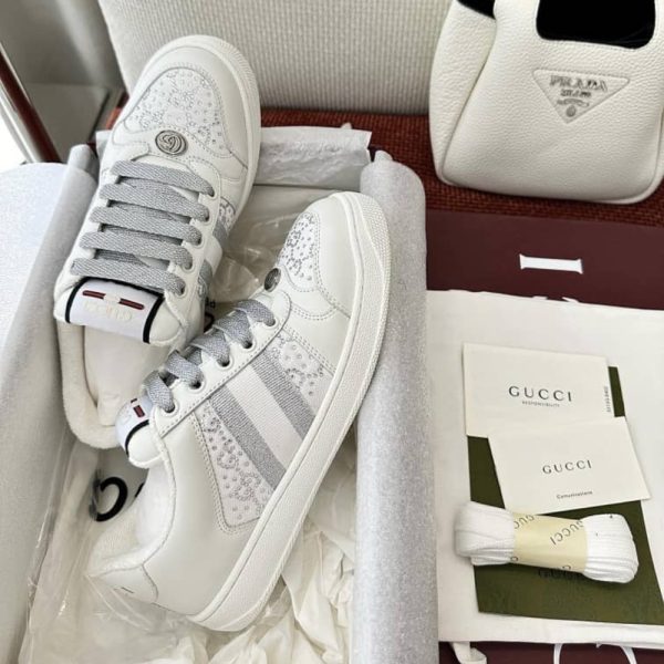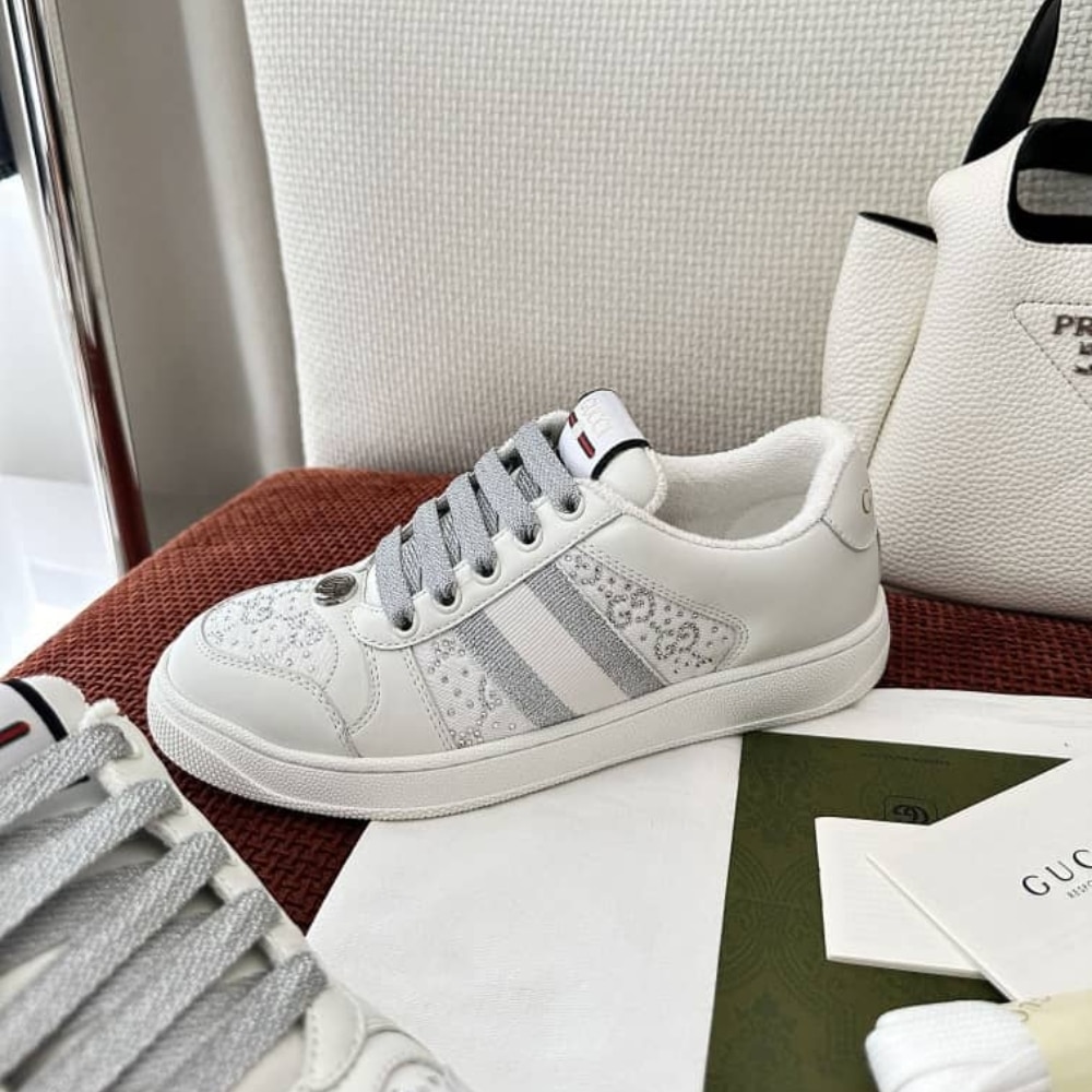 Gucci Women’S GG Ctystal Screener Sneaker White