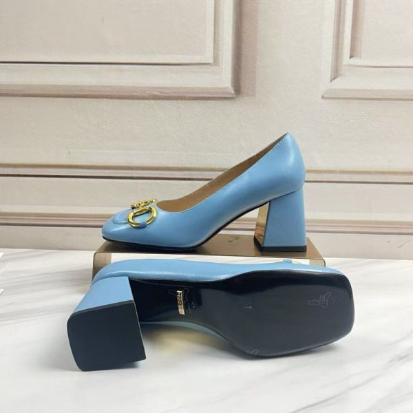 Gucci Women’S Mid Heel Pump With Horsebit Blue