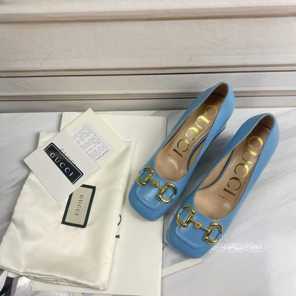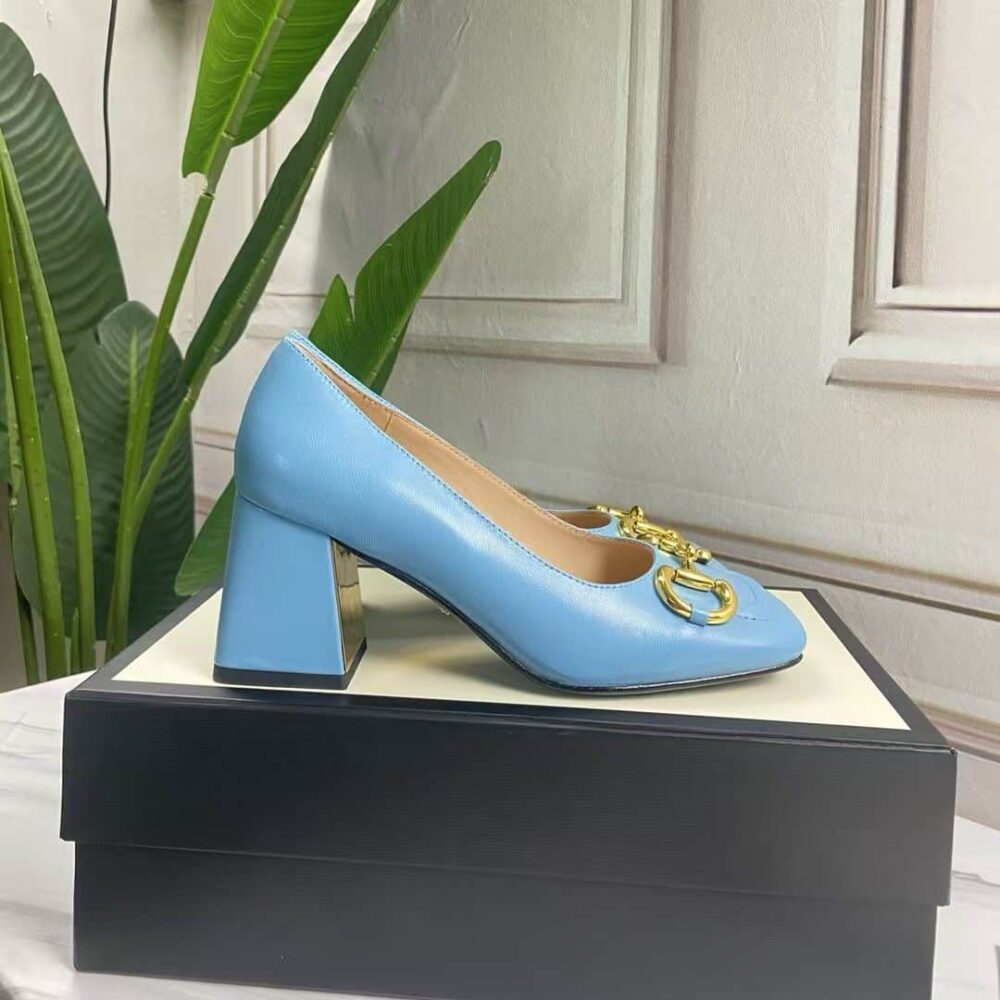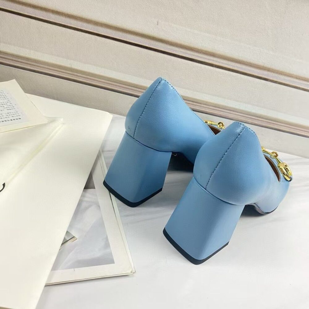 The Gucci Women’s Mid Heel Pump With Horsebit in blue redefines elegance with a bold, modern hue and the house’s iconic emblem. Balancing sleek design lines with refined comfort, it transforms every step into a radiant expression of prestige and timeless luxury.