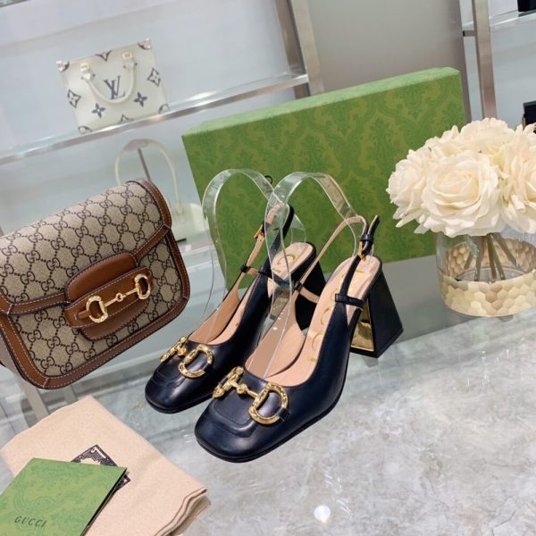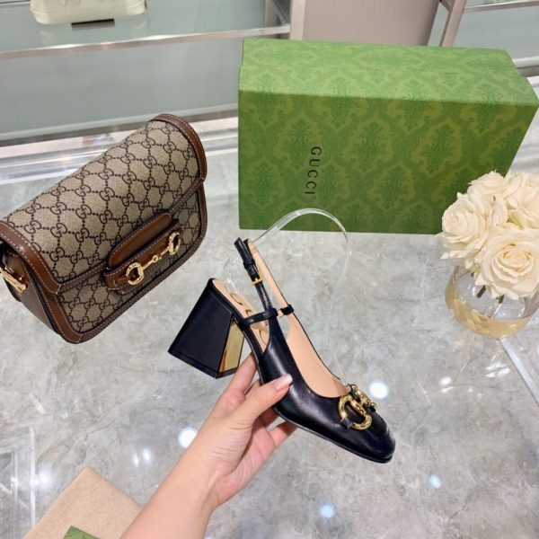 Gucci Women’S Mid Heel Slingback With Horsebit Black ‎643892 C9D00 1000
