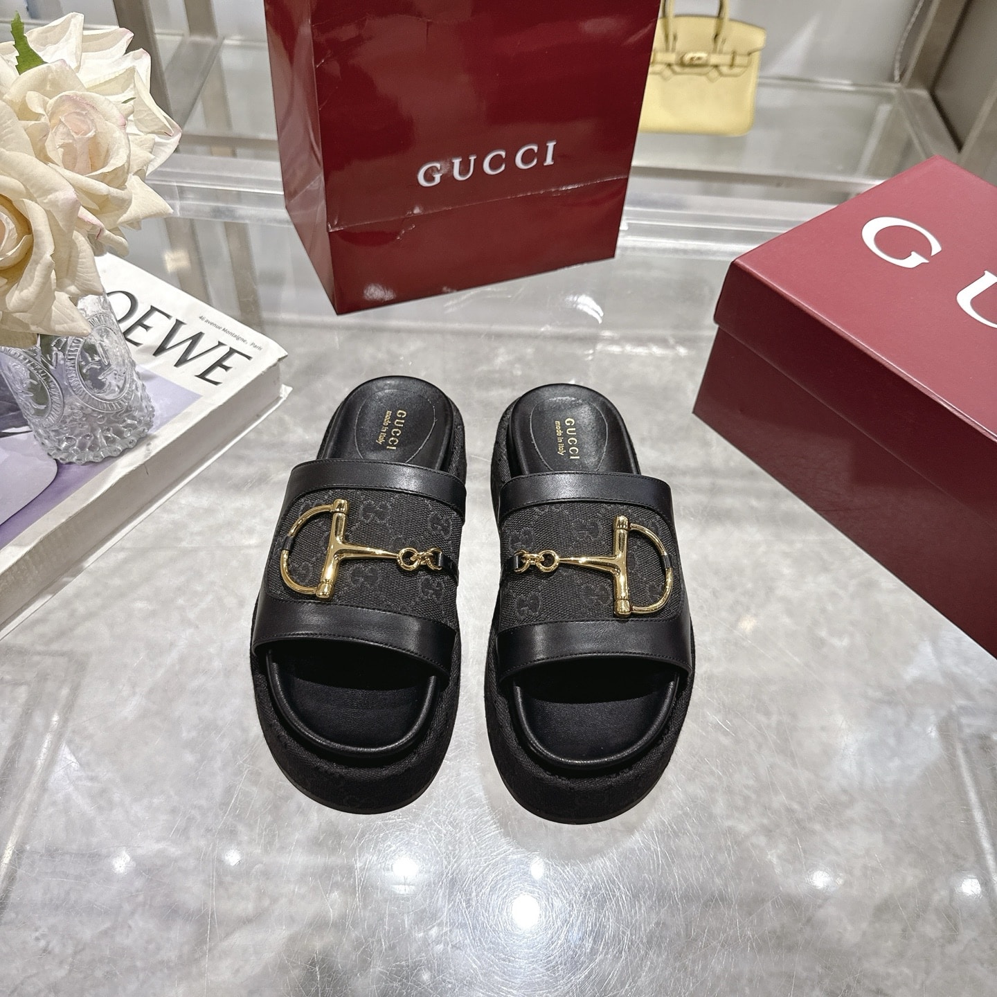 • Light gold-toned hardware