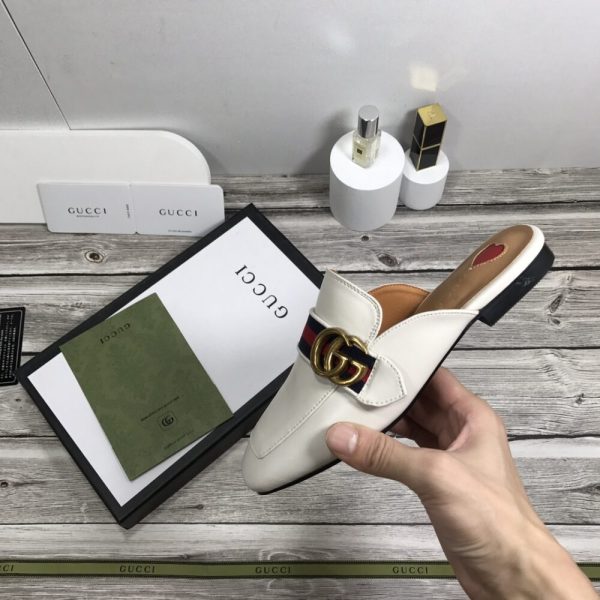 The Gucci Princetown Leather Slipper in white radiates timeless sophistication, merging sleek design with the house’s emblematic detailing. Its effortless silhouette and iconic allure elevate any ensemble, embodying refined comfort and undeniable prestige for the modern luxury enthusiast.