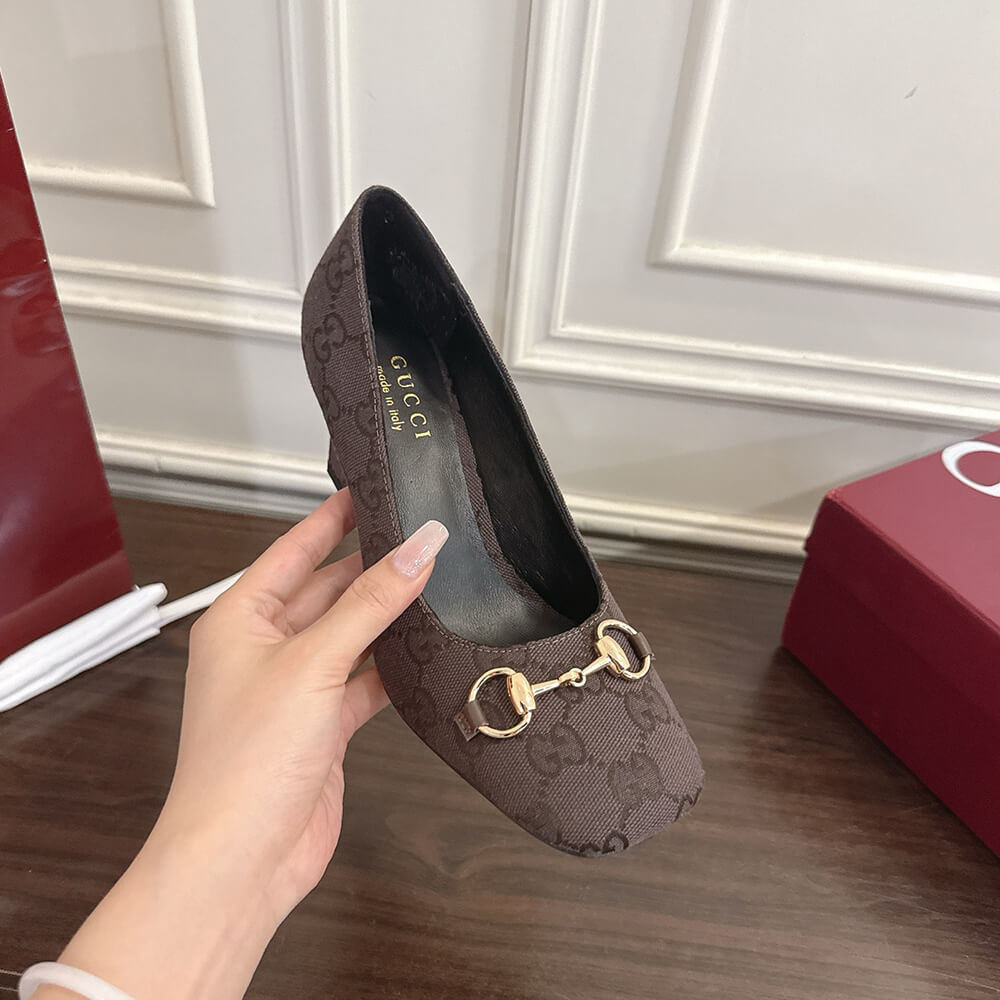 Horsebit and “Made in Italy by Gucci” logo in matching metallic finish