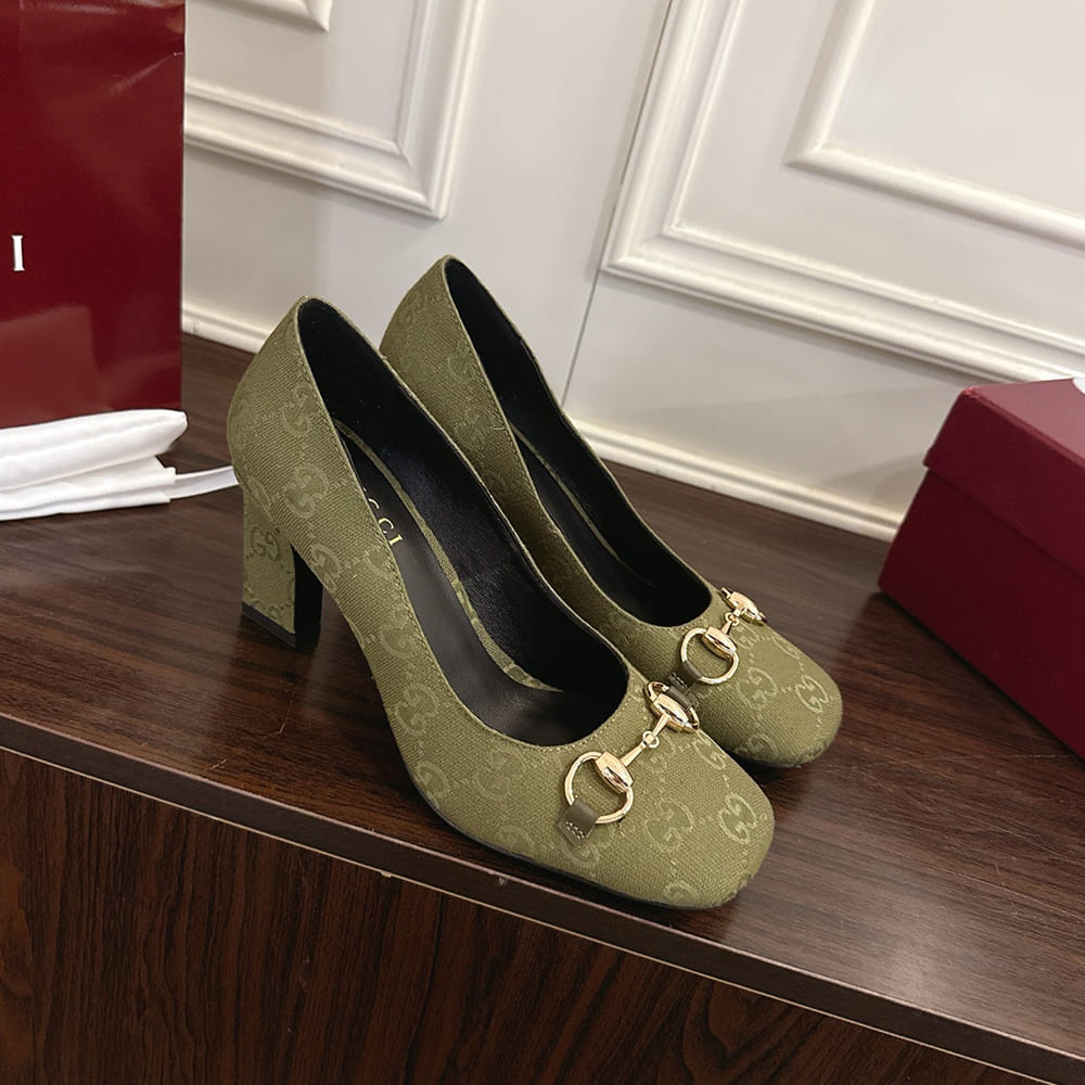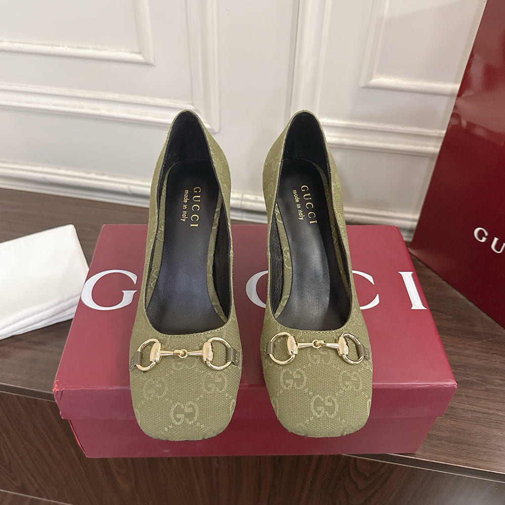 Horsebit and “Made in Italy by Gucci” logo in matching metallic finish