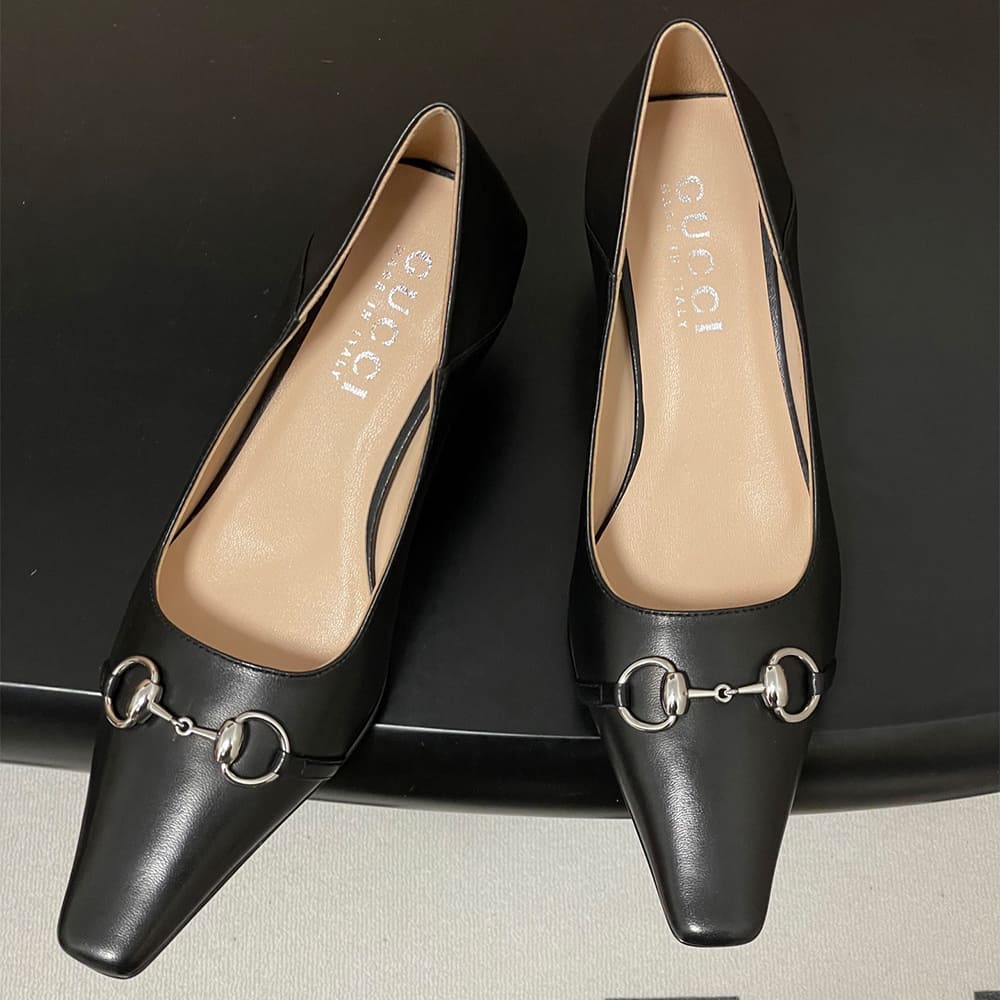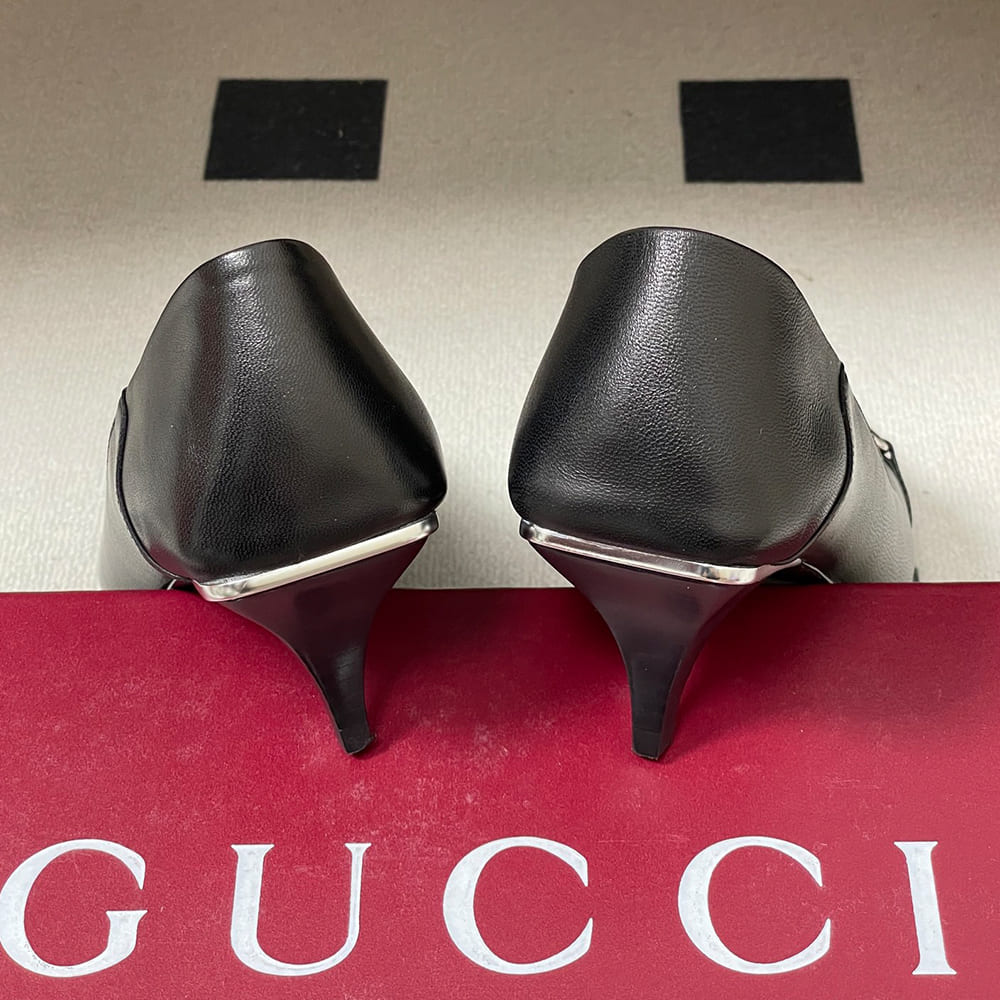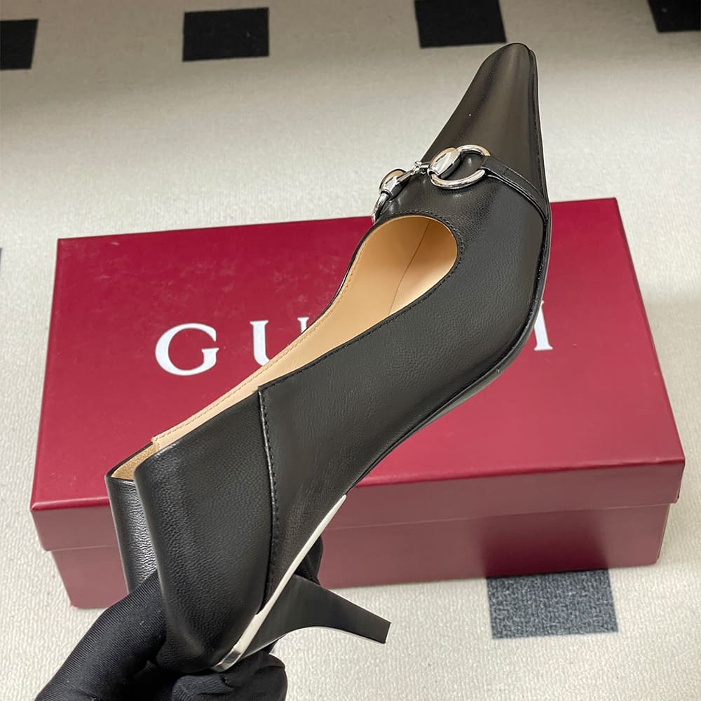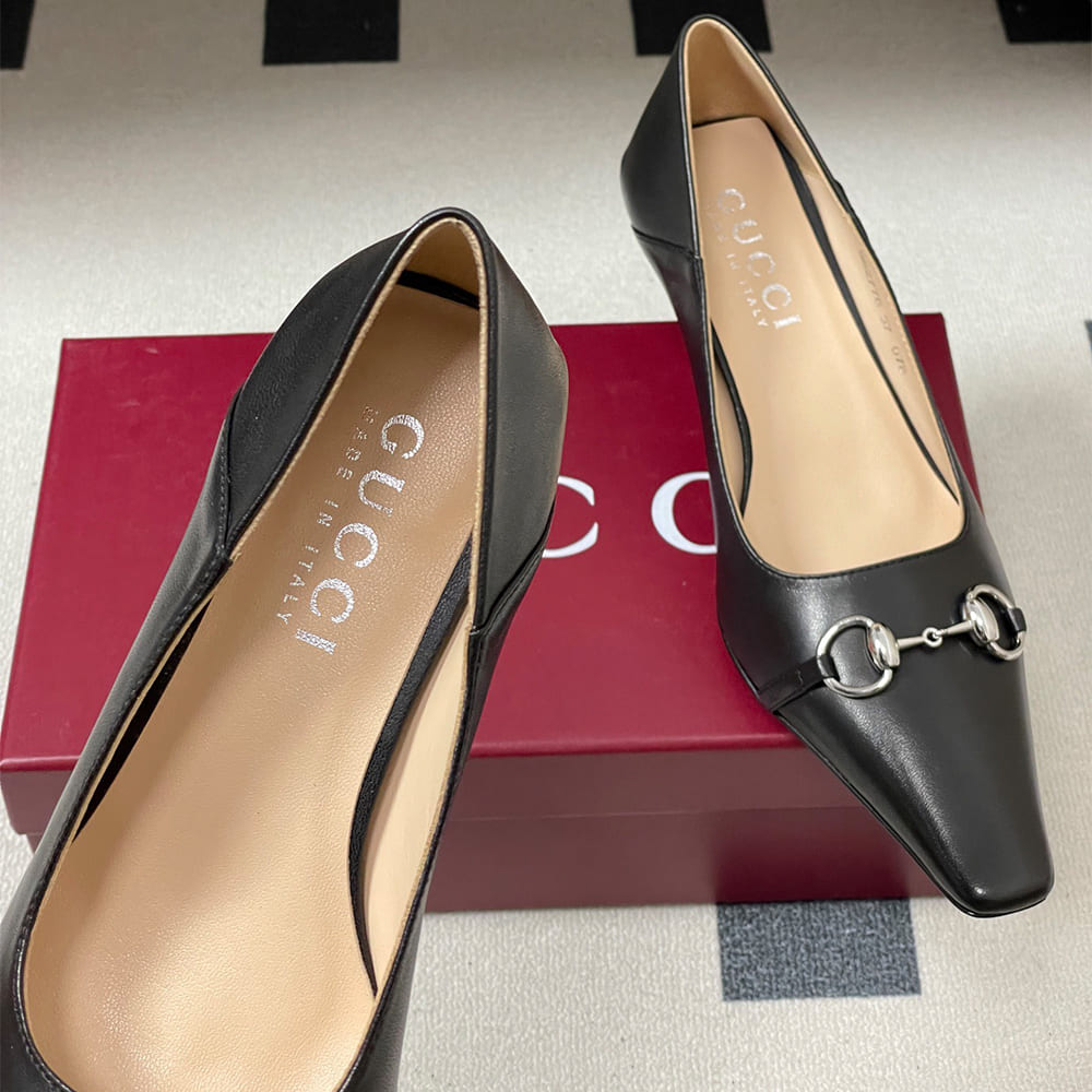 Horsebit and “Made in Italy by Gucci” logo in matching metallic finish
