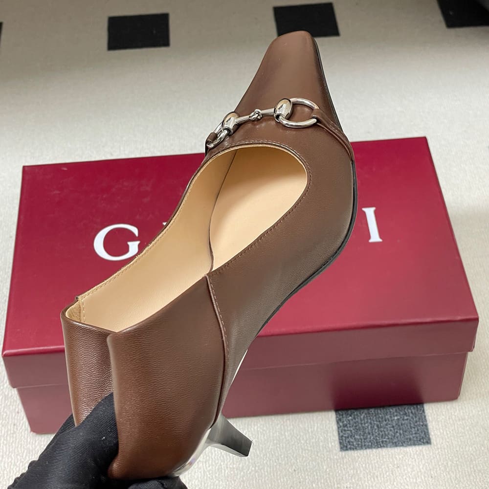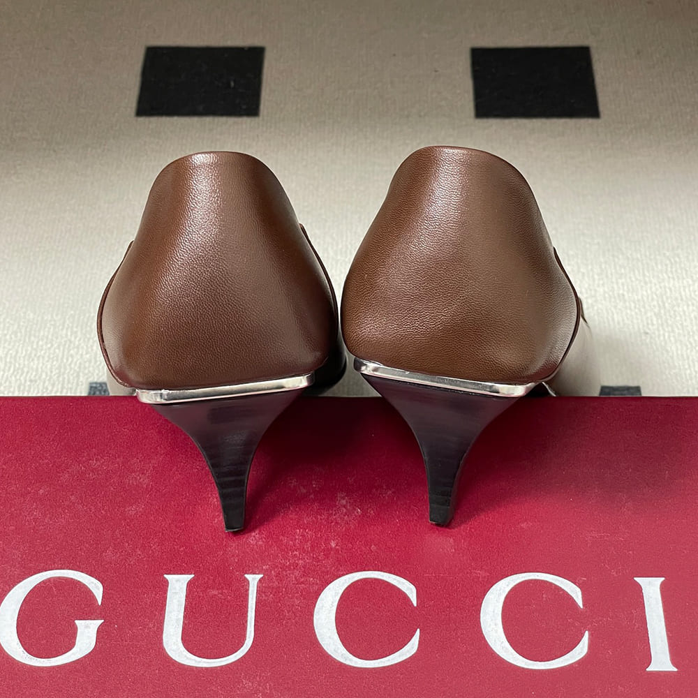 Horsebit and “Made in Italy by Gucci” logo in matching metallic finish