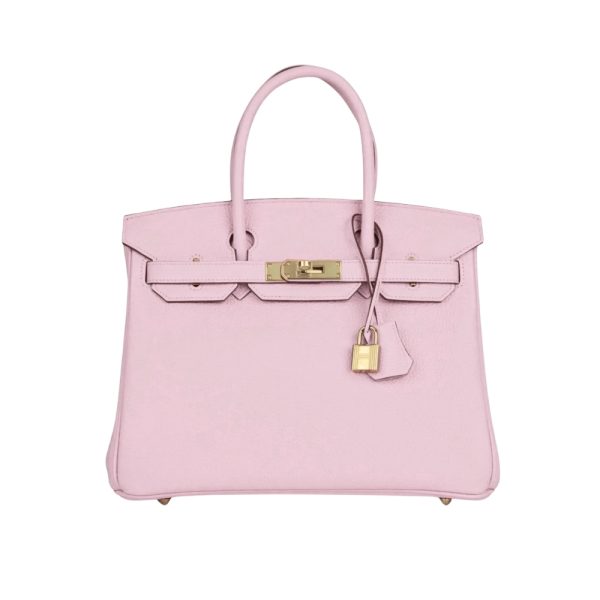The Hermes Birkin 30 in Light Pink is a highly coveted handbag that exudes feminine elegance and sophisticated charm. This 30cm edition is expertly crafted from Togo leather, a durable, scratch-resistant material known for its beautiful pebbled texture and ability to maintain the bag’s structured shape. It is perfectly complemented by radiant gold-tone hardware, which adorns the iconic swivel clasp, padlock, and protective base studs.