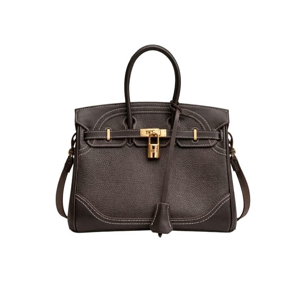 - Gold-tone hardware with a signature turn-lock closure and leather clochette