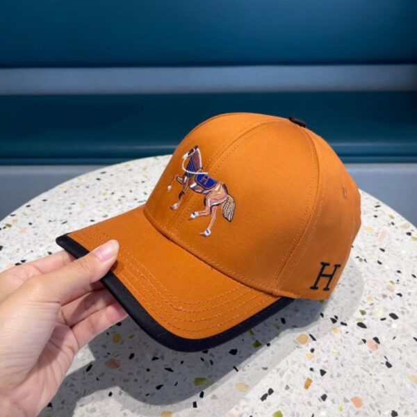 Hermes Canvas Baseball Cap Horse Hat Orange