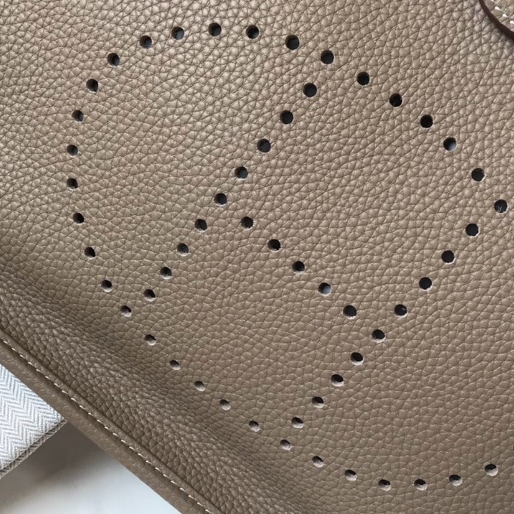 The Hermès Evelyne PM in Etoupe is the epitome of understated elegance, blending effortless sophistication with timeless design. Its clean lines and iconic perforated “H” emblem radiate prestige, making it the perfect statement of refined luxury for modern living.