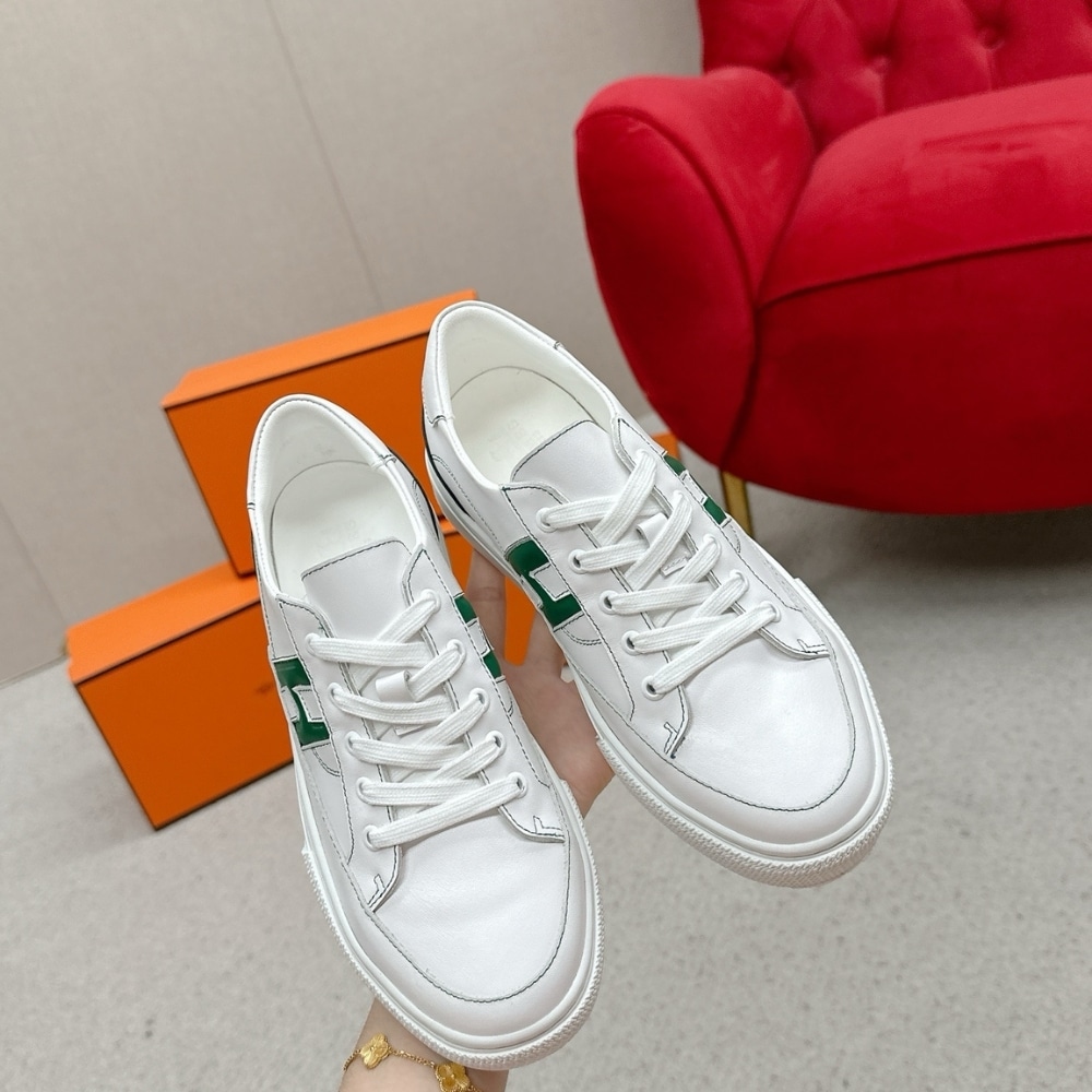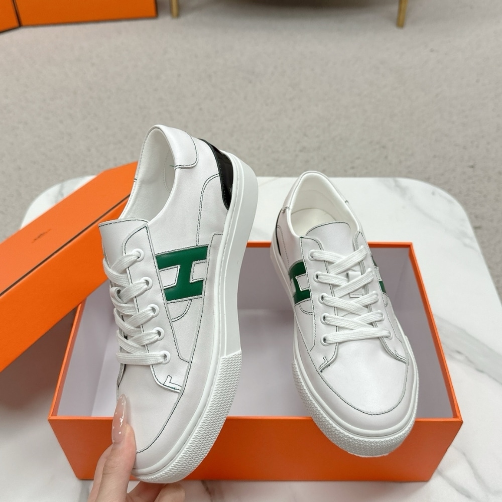 Hermes Deep Sneaker Blanc And Vert Bouteille