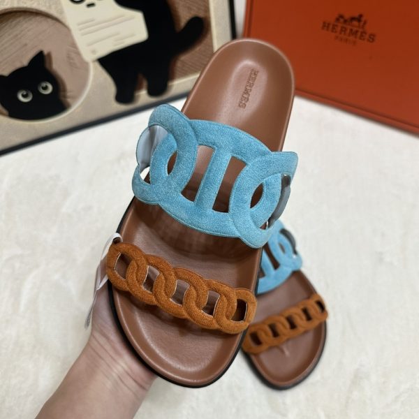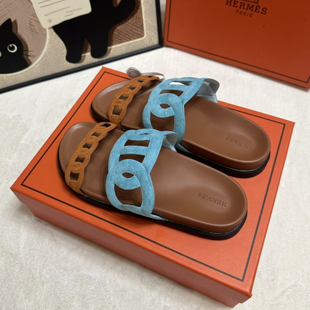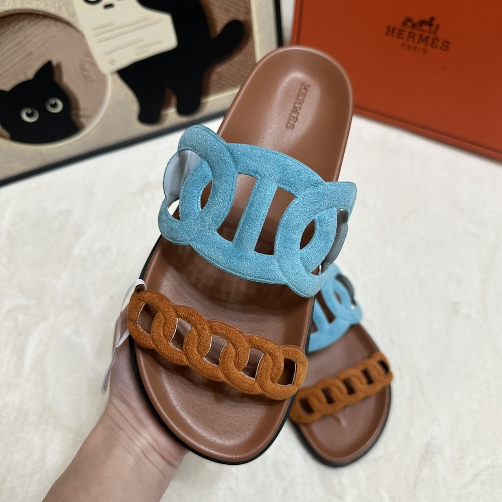 Description 1:1 Replica Shoes Techno-sandal with anatomical rubber sole and iconic Chaine dâAncre inspired strap Black rubber sole Natural leather insole Mineral blue and natural leather lining
