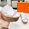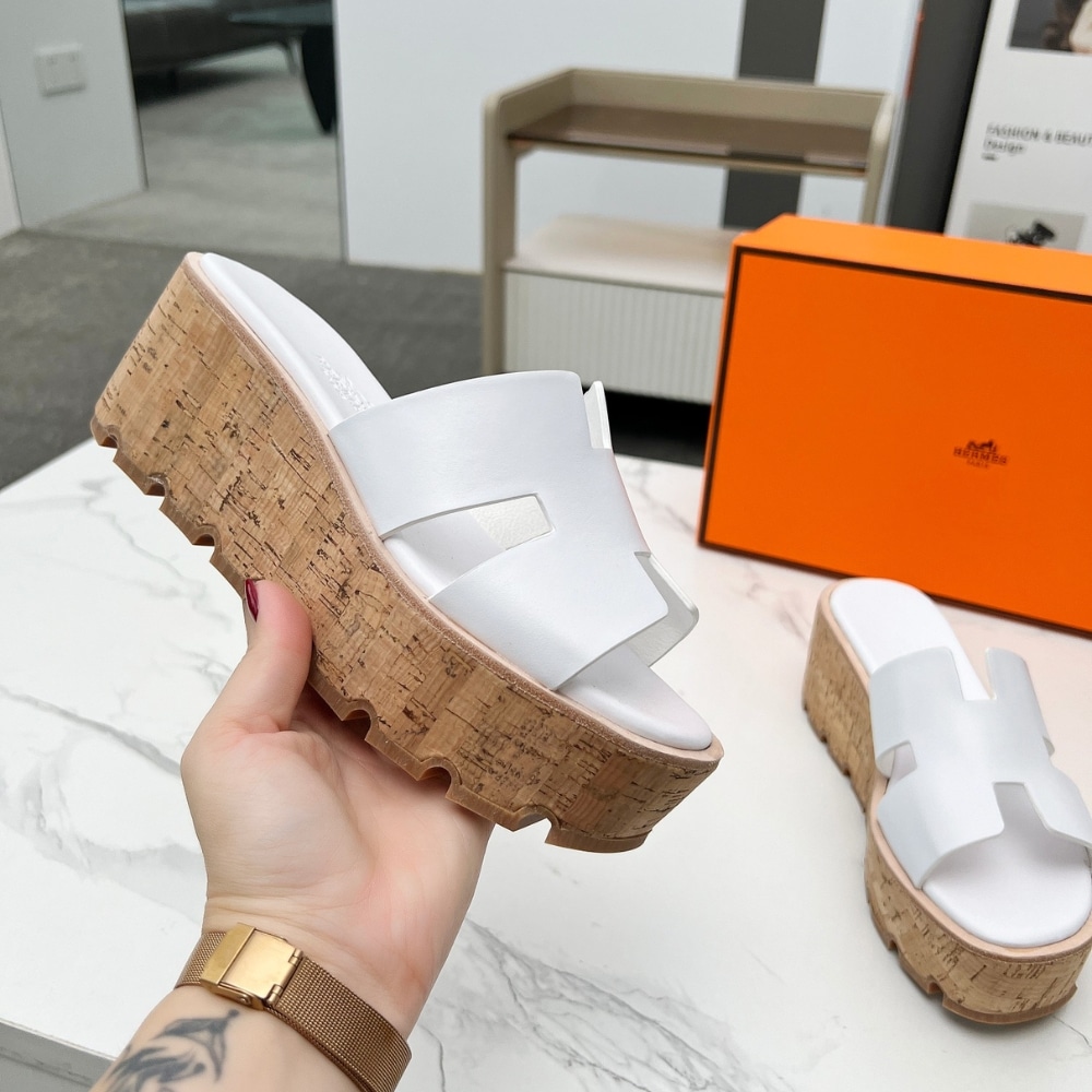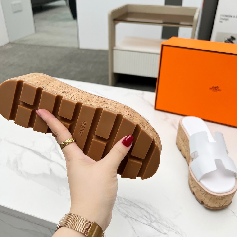 Description 1:1 Replica Shoes Sandal in calfskin with iconic “H” cut-out detail. A light cork platform for a comfortable style, perfect for summer.