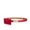 The Hermes Kelly Pocket 18 Belt in Rouge Radieux is a luxurious and functional accessory crafted by gold-tone hardware. This versatile belt features the iconic Kelly swivel clasp and an adjustable length that can be worn at the waist or on the hips. It is uniquely designed with a removable zipped pouch, perfect for securely holding small essentials like credit cards, coins, or lipstick.